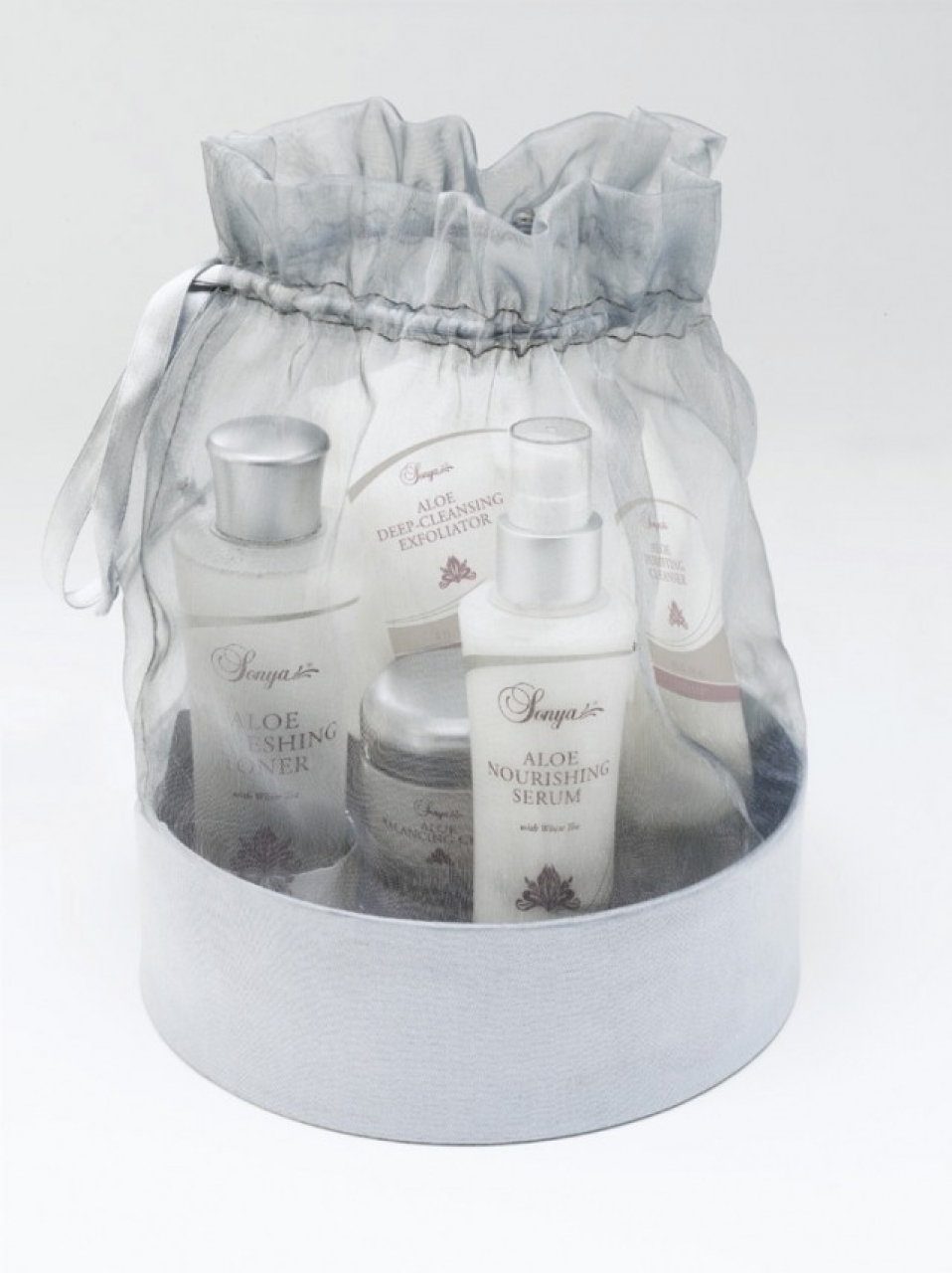 Sonya Skin Care Collection înseamnă mai mult decât o nouă linie de produse cosmetice, deoarece exprimă ideea de înfrumuseţare, de întinerire, precum şi dorinţa femeilor de a fi admirate, iubite. Printre ingredientele acestei colecţii destinate îngrijirii tenului se află Aloe vera, extracte de fructe, ceai alb şi factori de hidratare, ce “vor da timpul înapoi”, redându-i chipului deplina frumuseţe. Sonya Skin Care Collection cuprinde cinci produse de bază, pentru ca orice tip de ten să fie cât mai corect întreţinut, curăţat, hidratat şi echilibrat, menţinându-i-se sănătatea şi frumuseţea. Aloe Purifying Cleanser, Aloe Refreshing Toner, Aloe Nourishing Serum, Aloe Balancing Cream şi Aloe Deep-Cleansing Exfoliator acţionează sinergic pentru ca orice tip de ten să capete un aspect cât mai proaspăt şi mai luminos.
